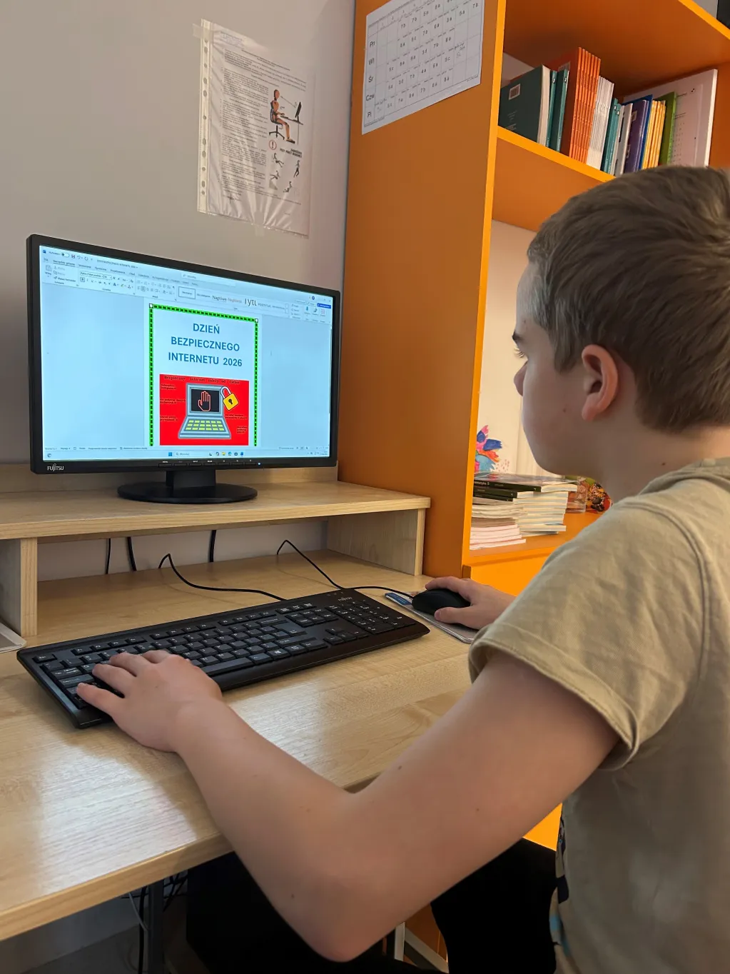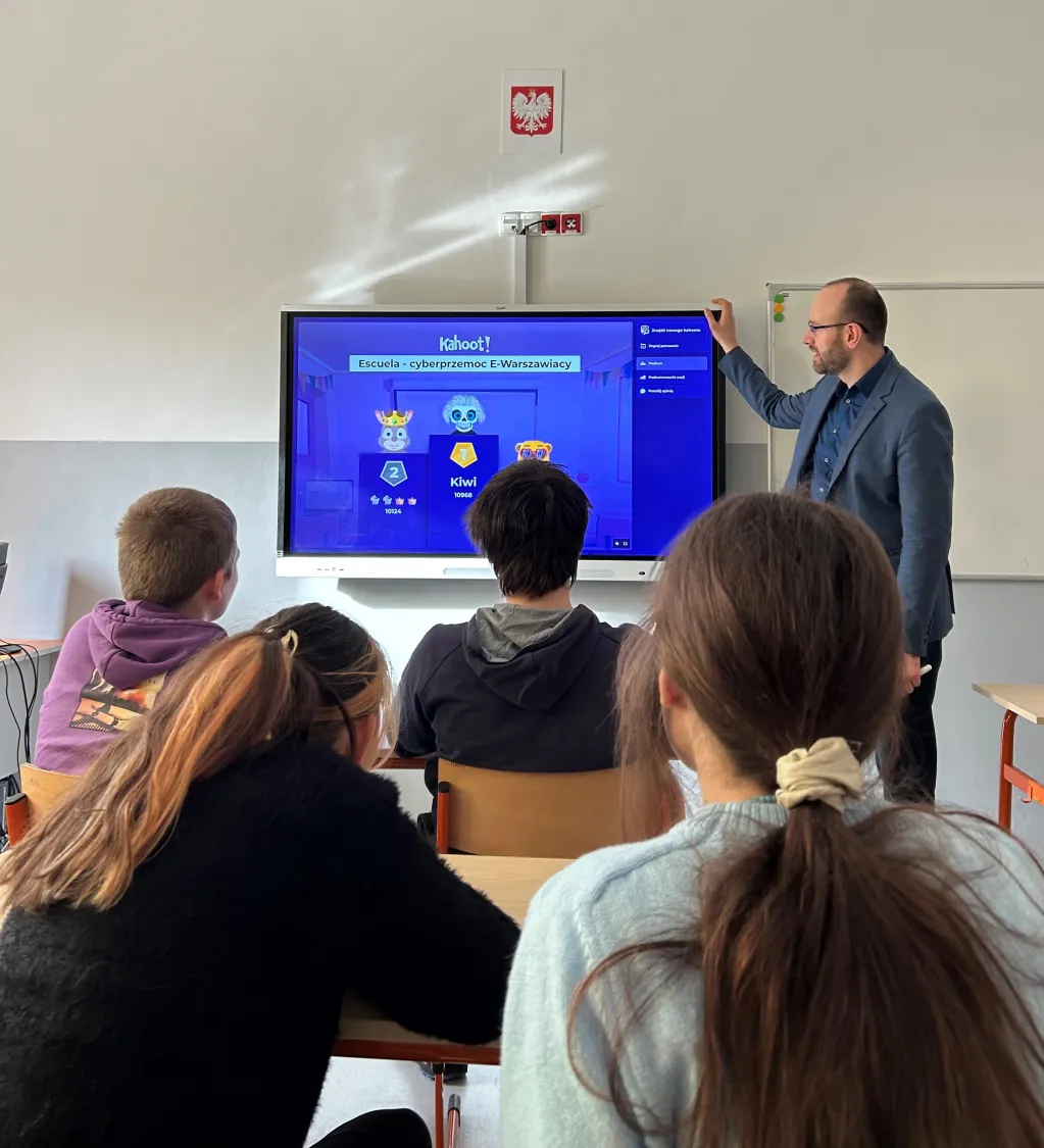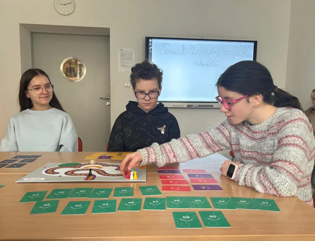 Od 10 lutego 2026r w naszej szkole, jak co roku, obchodziliśmy Dzień Bezpiecznego Internetu. Na zajęciach informatyki i Zajęciach Rozwijających Uzdolnienia w klasach IV-VIII uczniowie omawiali tematy związane z bezpieczeństwem w Sieci oraz z przestrzeganiem zasad higieny cyfrowej. Uczniowie wykonywali plakaty i prezentacje dotyczące bezpieczeństwa w Internecie, oglądali filmy edukacyjne, grali w quizy i gry planszowe. Wzięli również udział w lekcjach on-line, poświęconych tematyce cyberbezpieczeństwa prowadzonych przez specjalistów z Fundacji Dajemy Dzieciom Siłę a także w warsztatach zapobiegania cyberprzemocy w ramach projektu E-warszawiacy przygotowanych przez fundację Escuela. Ponadto uczniowie klasy 5b, 5c, 8a obejrzeli spektakl „Zagubieni w Sieci” w Terminalu Kultury Gocław. Klasy młodsze uczyły się zasad bezpieczeństwa w Internecie oglądając filmy edukacyjne, słuchając piosenek i wykonując prace plastyczne.